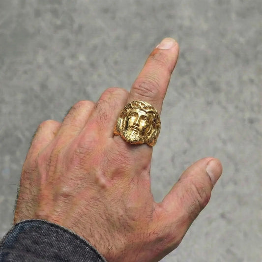 Gold 3D Jesus Head Thorn Ring