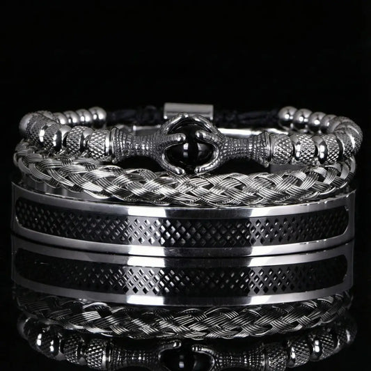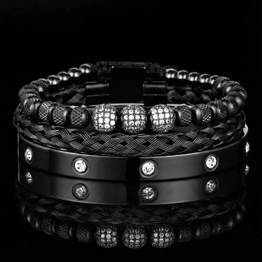 Men's Luxury CZ Pave & Braided Cable Bracelet Set