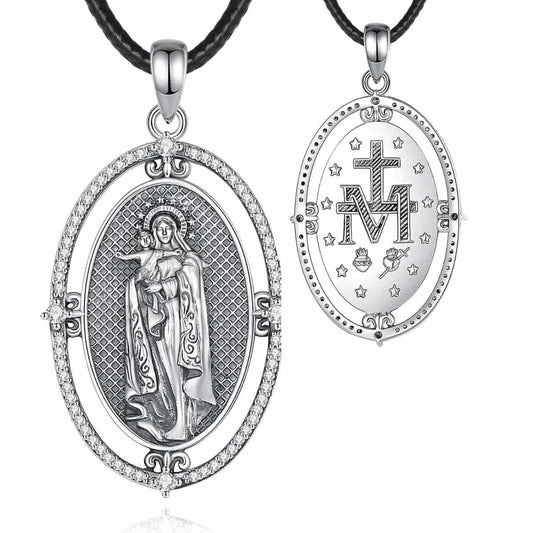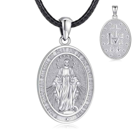 Silver Virgin Mary Miraculous Medal Necklace