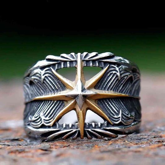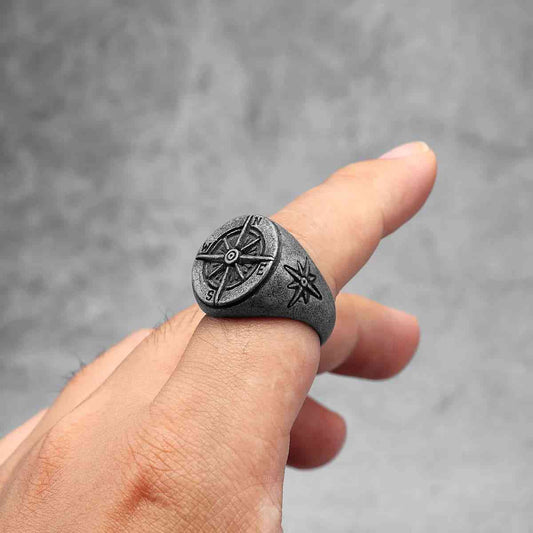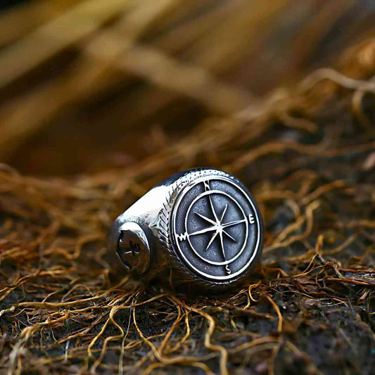 Our compass rings are crafted from high-quality stainless steel, known for its resistance to tarnish and hypoallergenic properties, ensuring durability and lasting beauty.