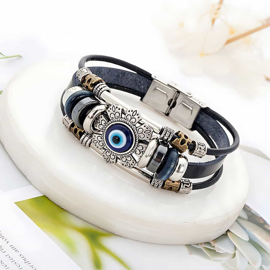 Handcrafted Leather Evil Eye Bracelet for Protection