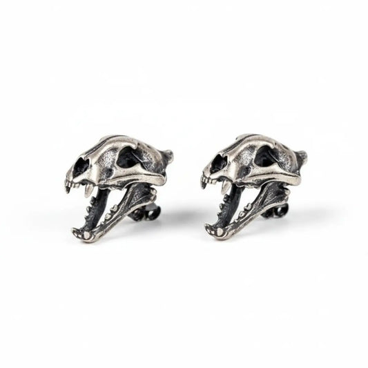 Skull studs offer a low-profile option for daily wear and comfortable backs for pierced ears.