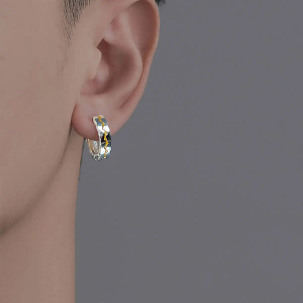 Die Creolen mit Rissstruktur sind Unisex-Ohrstecker aus 925 Sterlingsilber mit einzigartigem rissigem Design und schwarzer oder goldener Harzeinlage, für einen markanten und hypoallergenen Look im Alltag.
