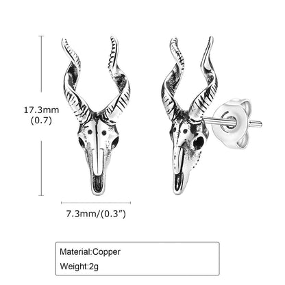 Ziegenkopf-Ohrstecker Sterlingsilber. Einzigartiges unisex Design aus 925er Sterlingsilber mit Antik-Finish für kühnen Stil und dauerhaften Tragekomfort.