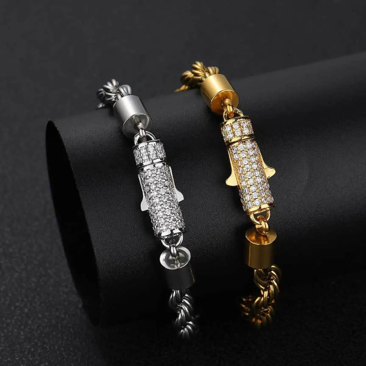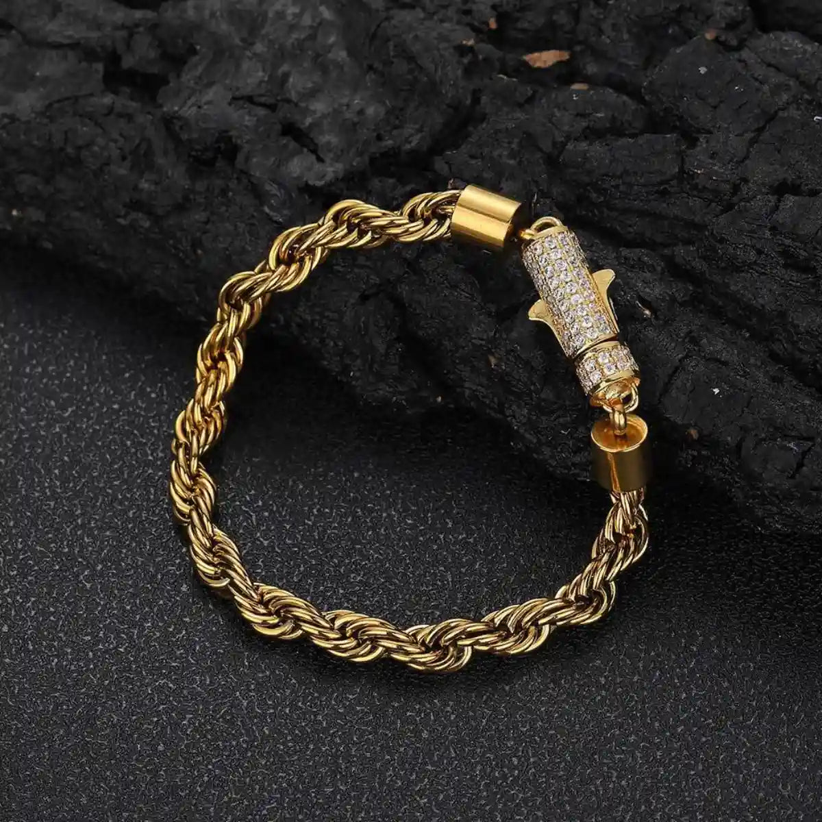 Goldene Seilarmband mit Iced Verschluss 6mm
