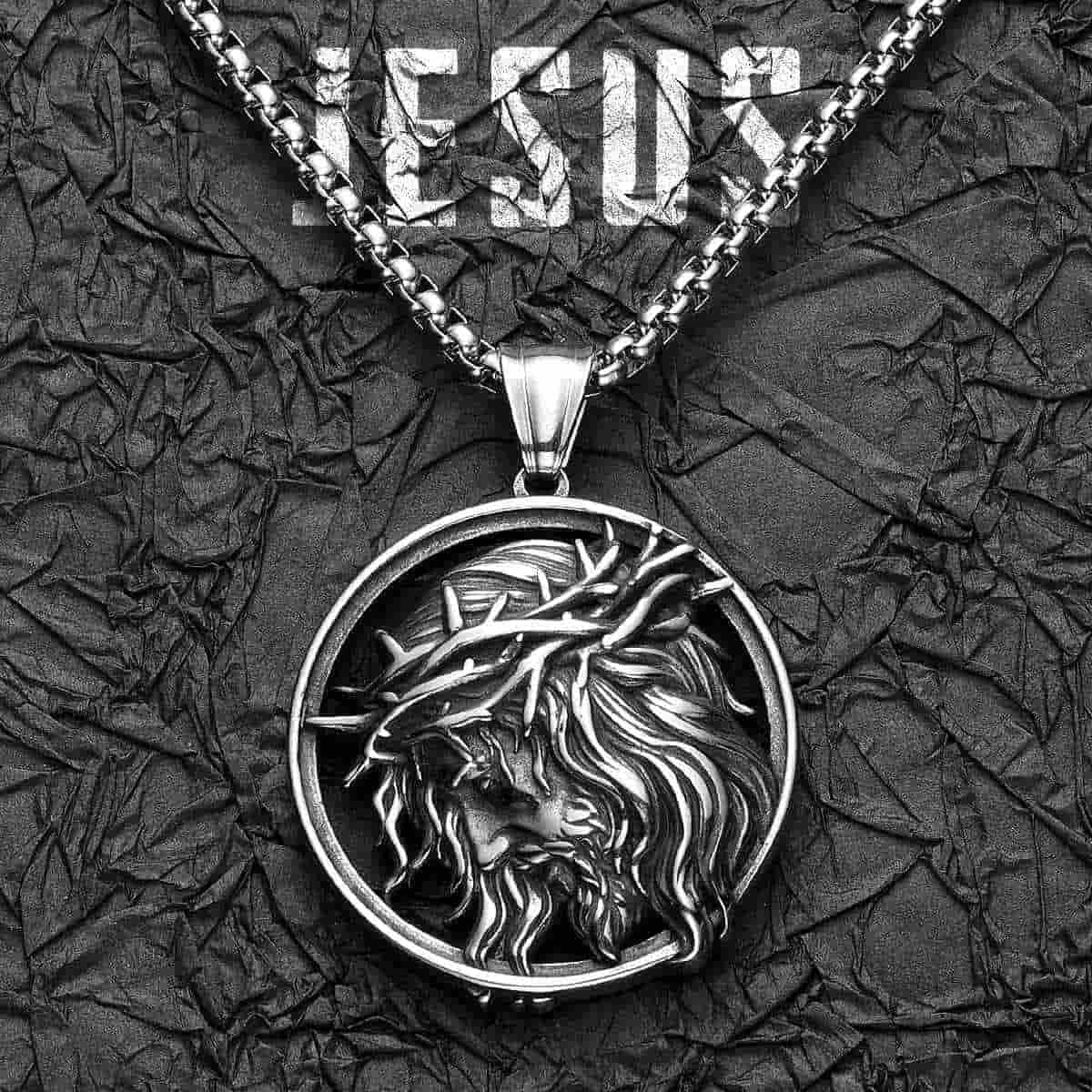Runder Jesus Kopf Anhänger mit Dornenkrone