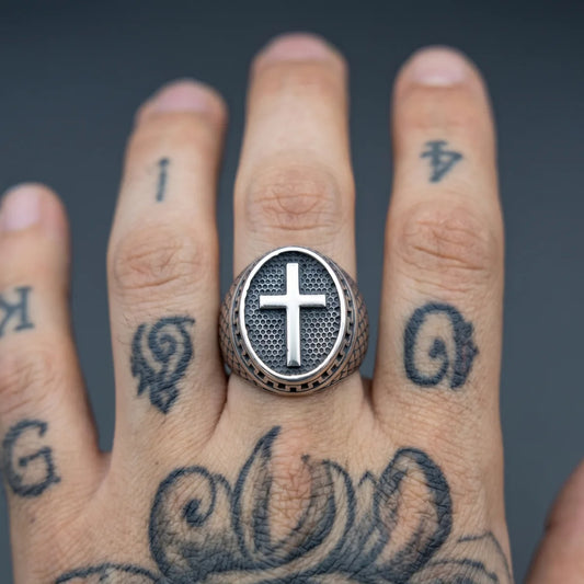 Anillo con Cruz y Escamas de Dragón de Acero Inoxidable
