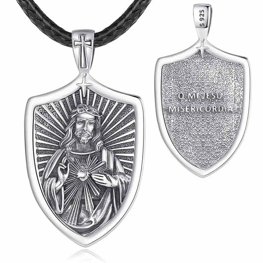 Collar Escudo del Sagrado Corazón de Jesús de Plata