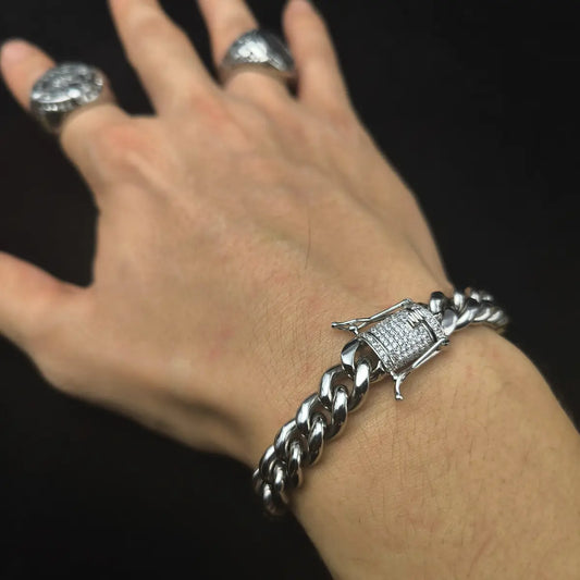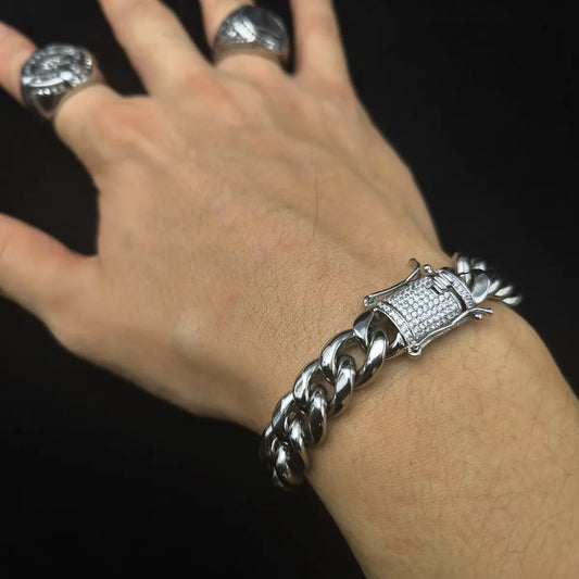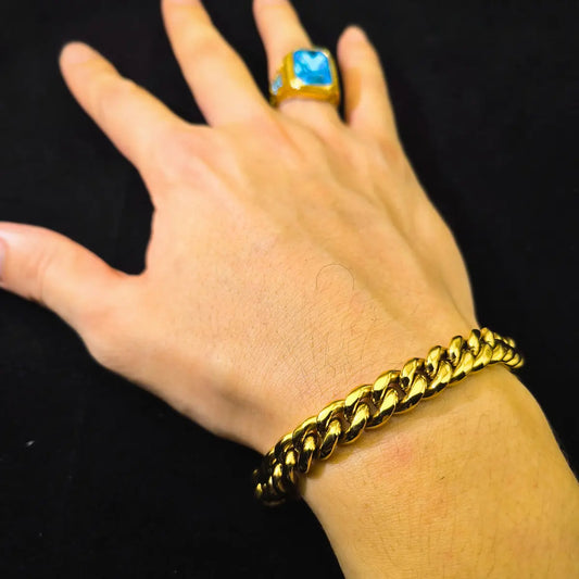 Explora las llamativas pulseras cubanas de Xenos Jewelry, diseñadas específicamente para hombres....