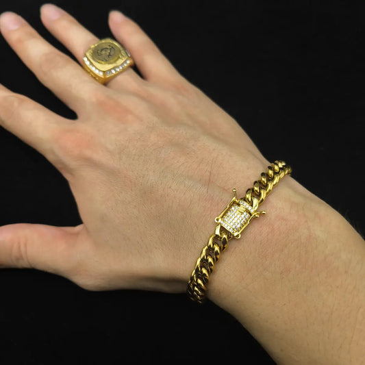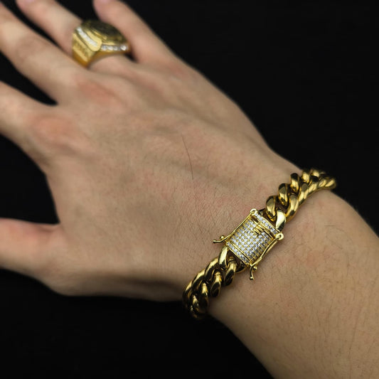 Pulsera Cubana con Clasp Iced Oro 8mm