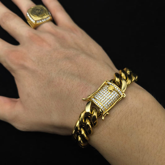 Pulsera Cubana con Clasp Iced Oro 16mm