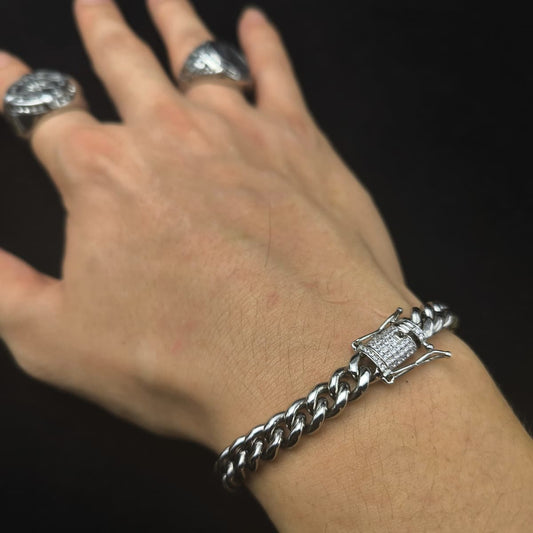Pulsera Cubana con Clasp Iced Plata 8mm