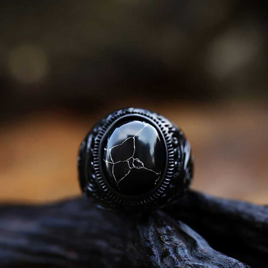 Anillo de Turquesa Negra de Acero Inoxidable