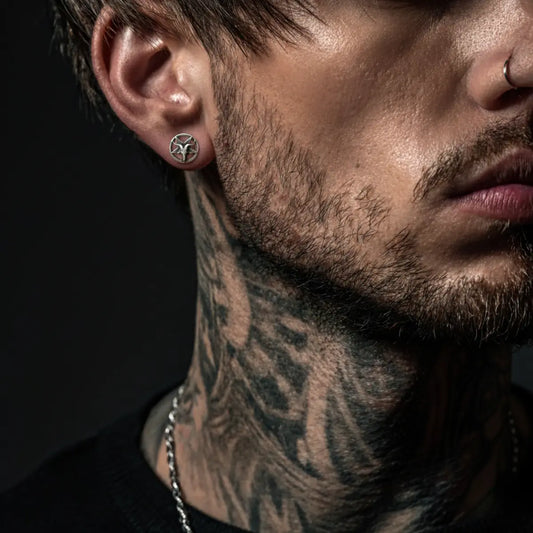 Pendientes Baphomet Satan Clavos Plata de Ley