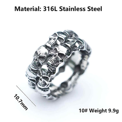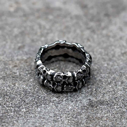 Anillo con Doble Fila de Calaveras de Acero