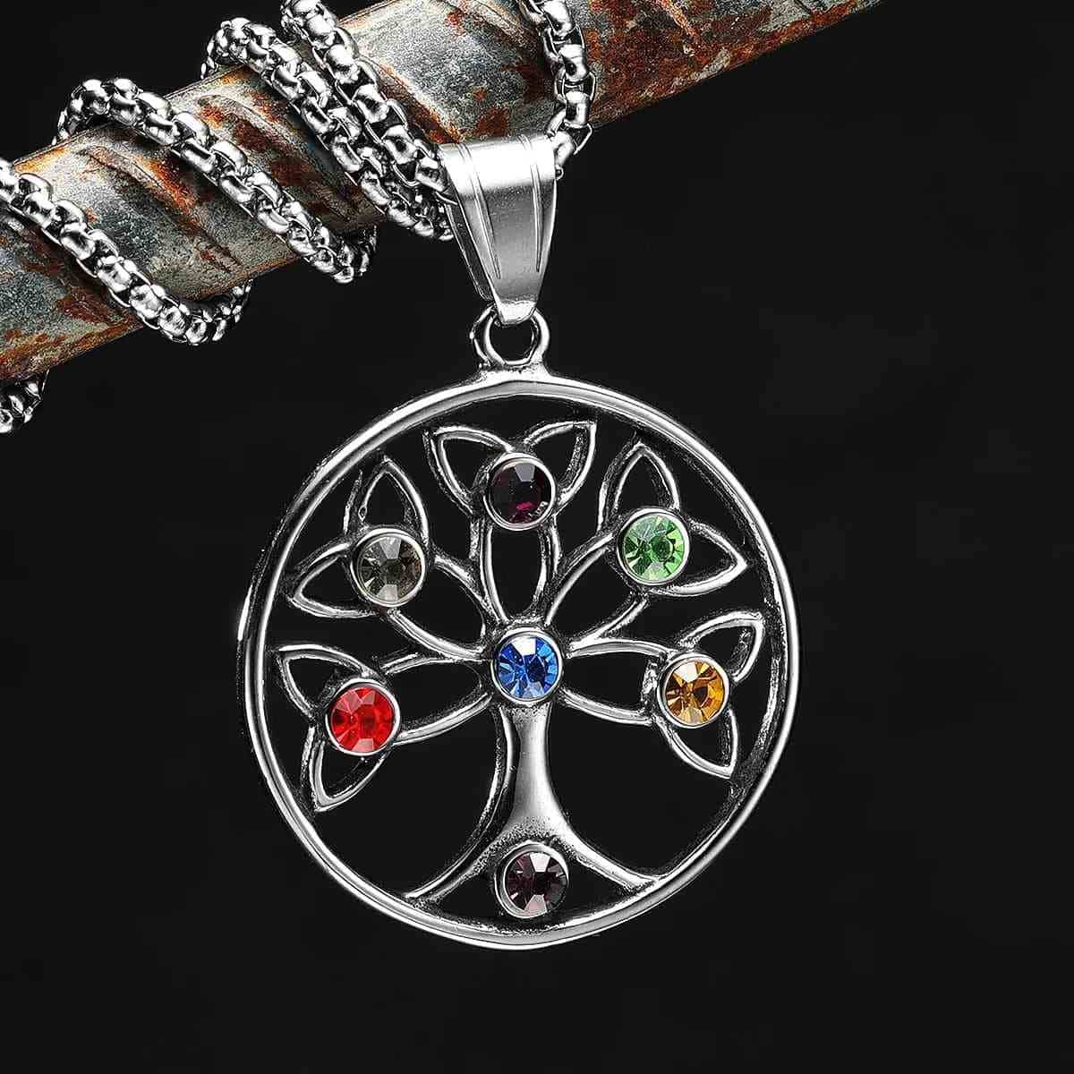 Colgante Árbol Genealógico con Piedras de Nacimiento y Nudos Celtas