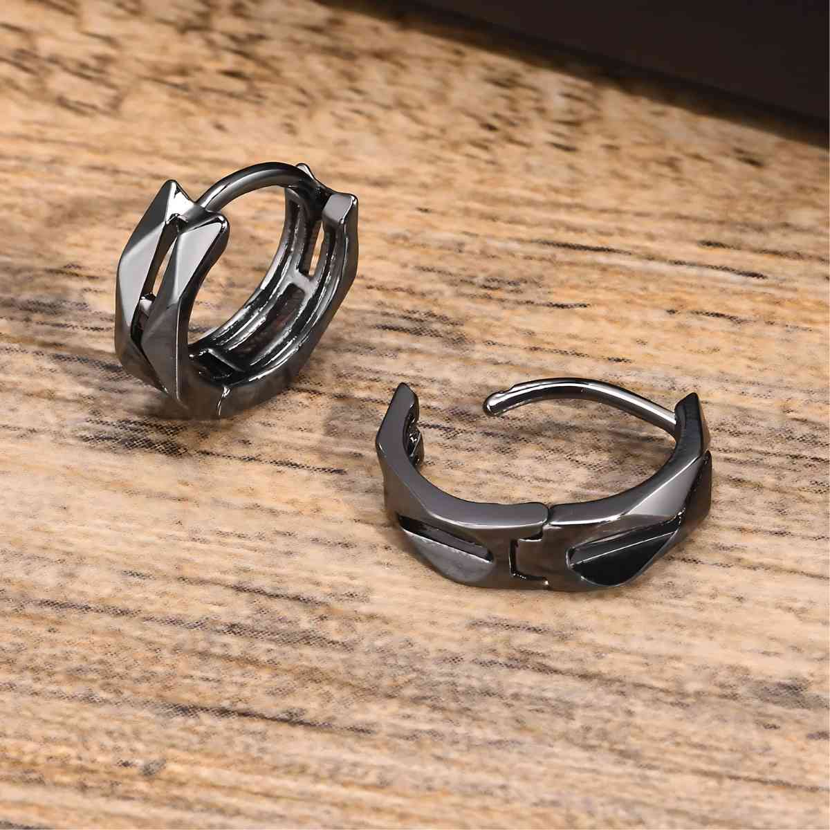 Los Aretes Aro Geométricos presentan un diseño moderno y audaz, perfectos para quienes aprecian accesorios únicos y contemporáneos. Disponibles en plata y negro, son ideales para hombres y mujeres.