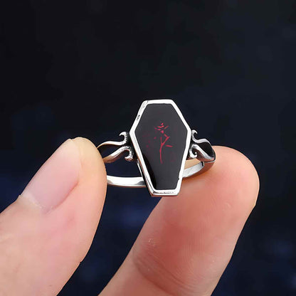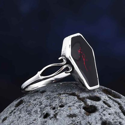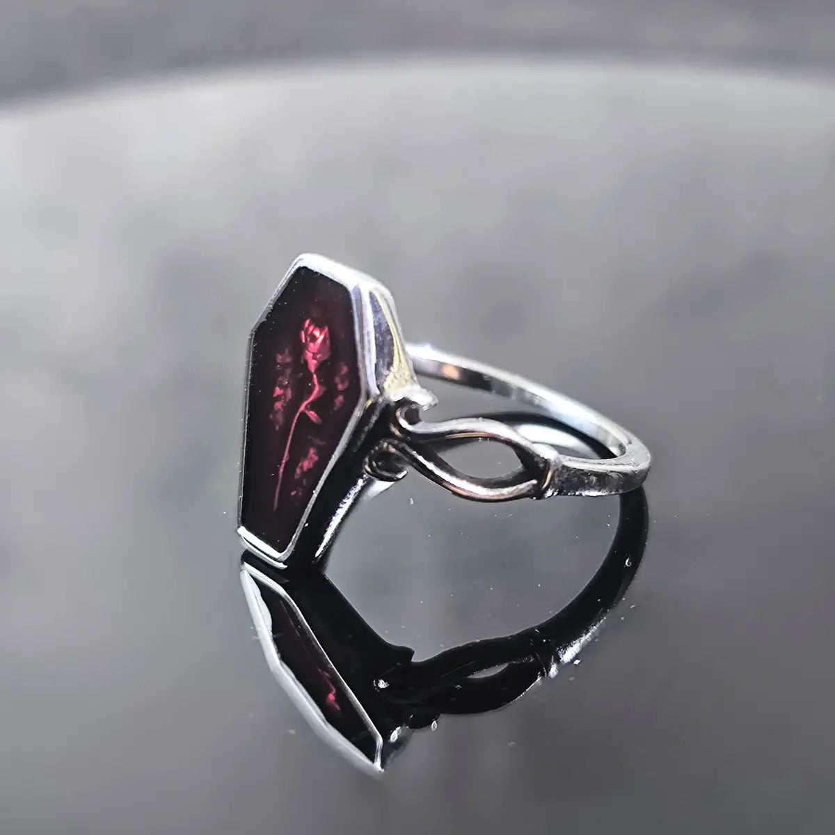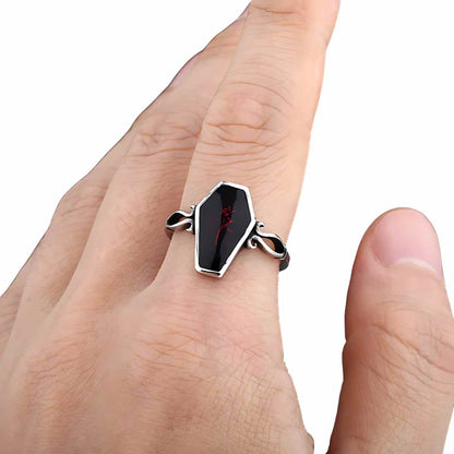 Anillo de la Rosa Gótica Roja en Forma de Ataúd