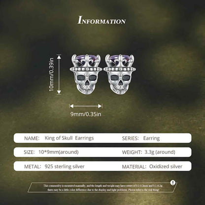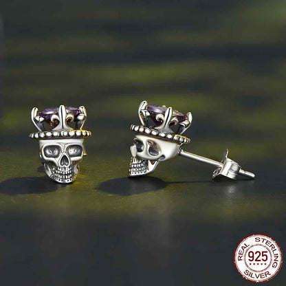 Pendientes de calavera rey de plata son un accesorio atrevido y majestuoso, hechos de plata de ley 925 con una gema de circonita cúbica morada para un estilo lujoso.