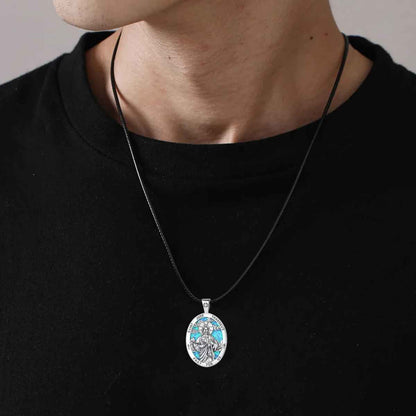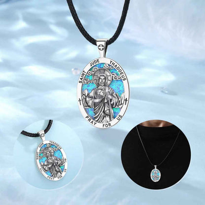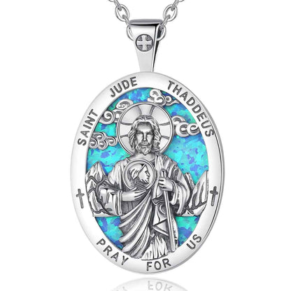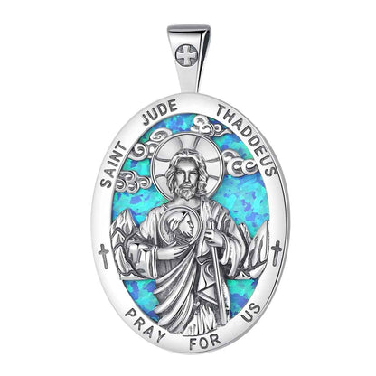 Medalla San Judas Tadeo con Incrustación Azul de Plata