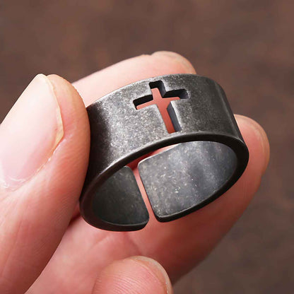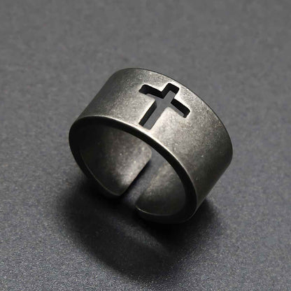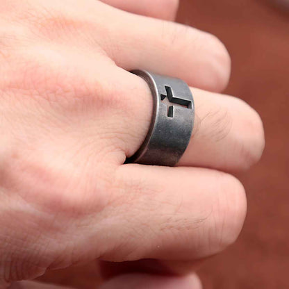 Anillo Banda Simple con Cruz de 10mm de Acero Inoxidable