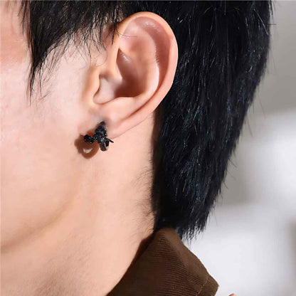 Pendientes de Aro Calavera y Rosa. Diseño unisex en acero inoxidable 316L duradero, colores plata y negro para un estilo duradero y cómodo.