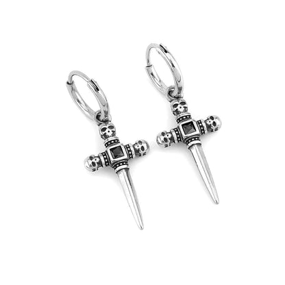 Los Aros de Aro con Daga y Calavera son un accesorio unisex audaz, fabricado en acero inoxidable 316L de alta calidad, ideal para amantes de culturas gótica, punk, biker y emo.