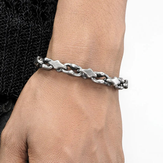 Bracelet Géométrique en Acier Inoxydable Argent Antique