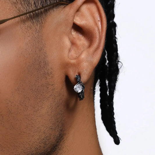 Clous d'Oreilles Druzy Noir en Argent Sterling
