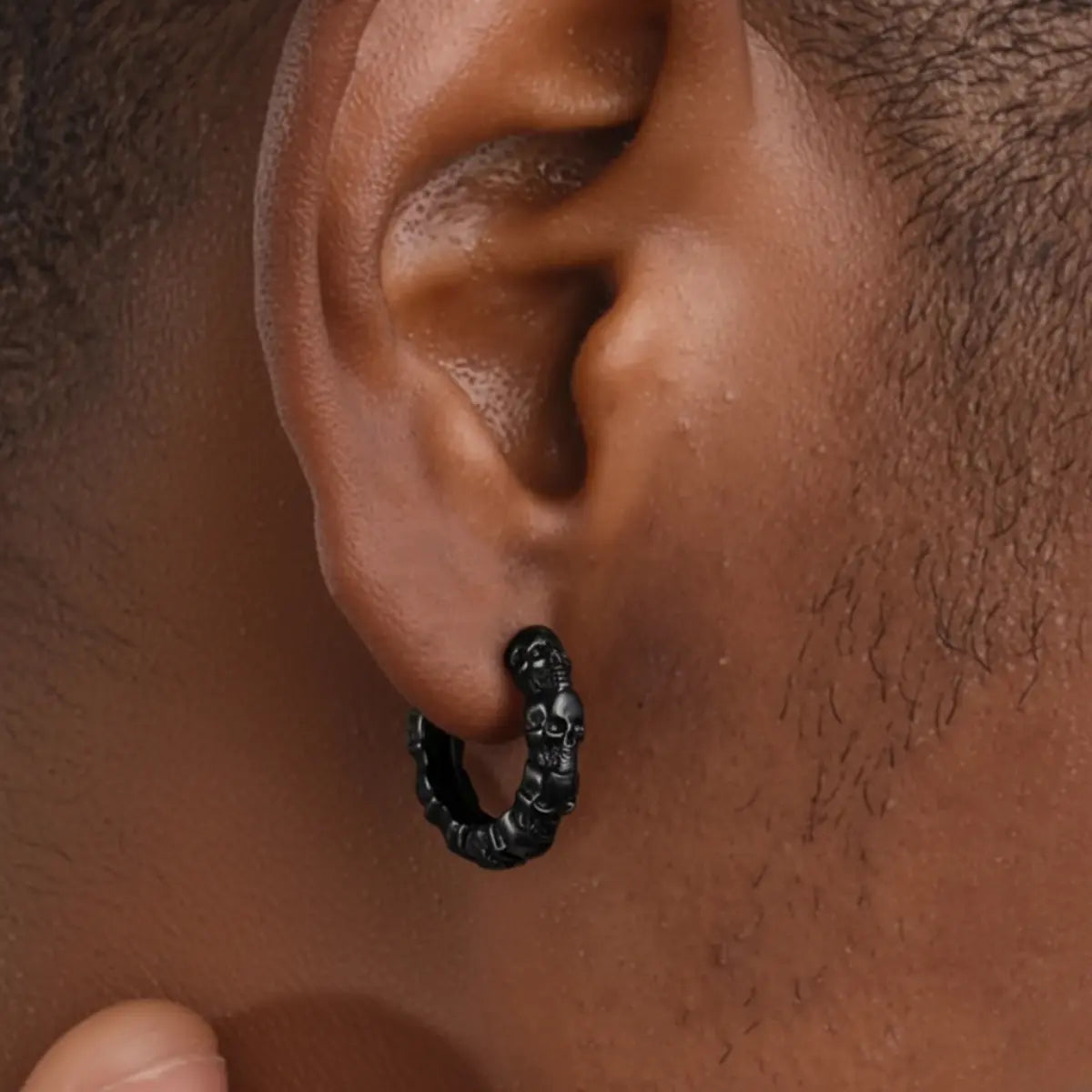 Scopri l'audace fascino della nostra Collezione di Orecchini con Teschio per Uomini....