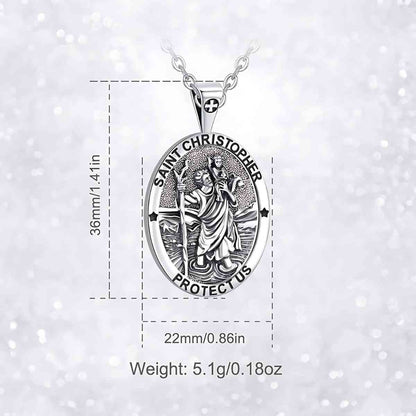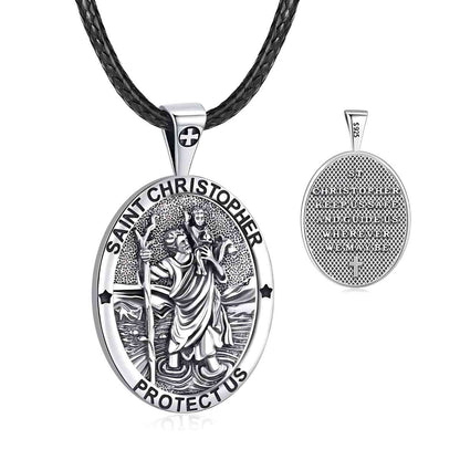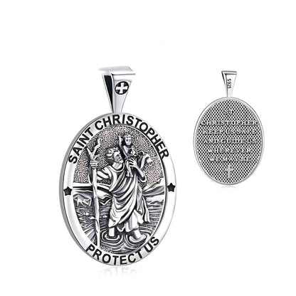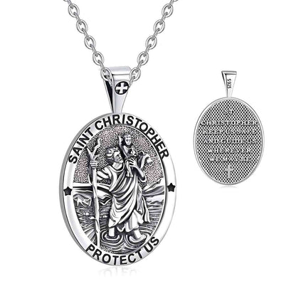 IlCollana di San Cristoforo d'argento con preghieraÈ un pezzo senza tempo progettato per uomini e donne, con una rappresentazione dettagliata di San Cristoforo che trasporta il Cristo Bambino. Questo ciondolo funge da simbolo di protezione e guida, rendendolo un accessorio significativo.