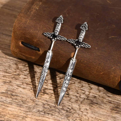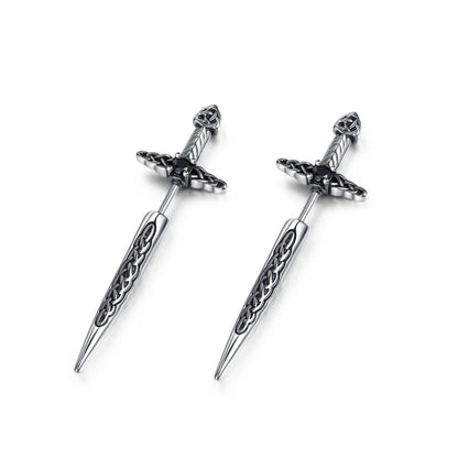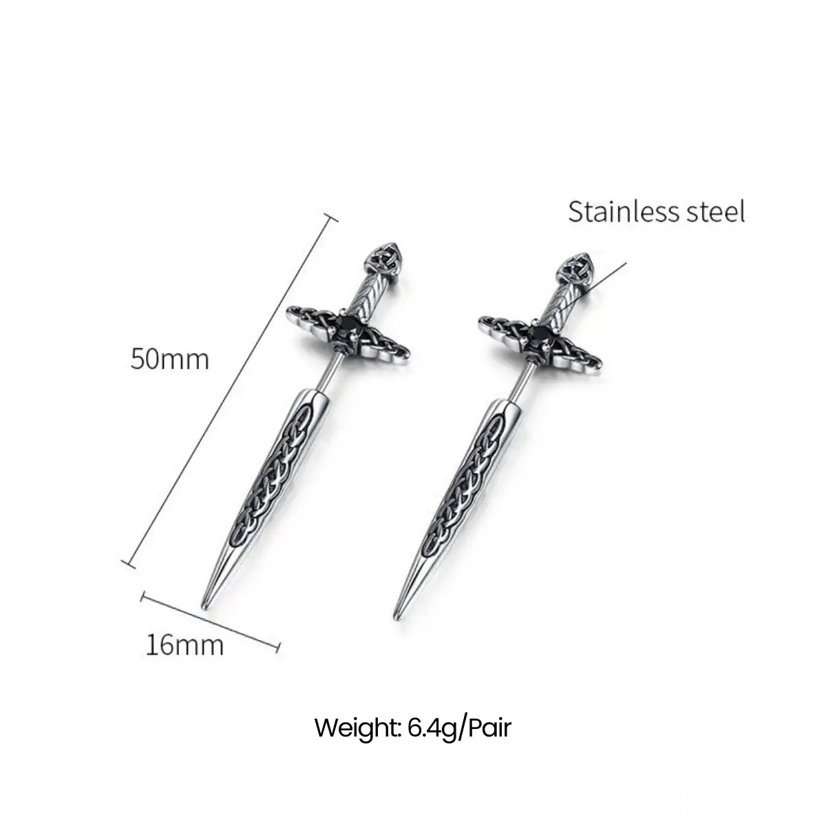 Gli Orecchini a Spada a Traverso dell'Orecchio sono accessori unisex sorprendenti realizzati in acciaio inossidabile di alta qualità. Presentano un design unico che ricorda una spada che perfora il lobo dell'orecchio, e vantano dettagli intricati ispirati all'estetica vichinga, rendendoli un audace pezzo di dichiarazione per qualsiasi abbigliamento.