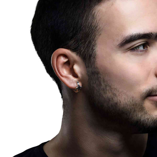 Kolczyki z podwójnym łańcuchem z krzyżem Drop Hoop