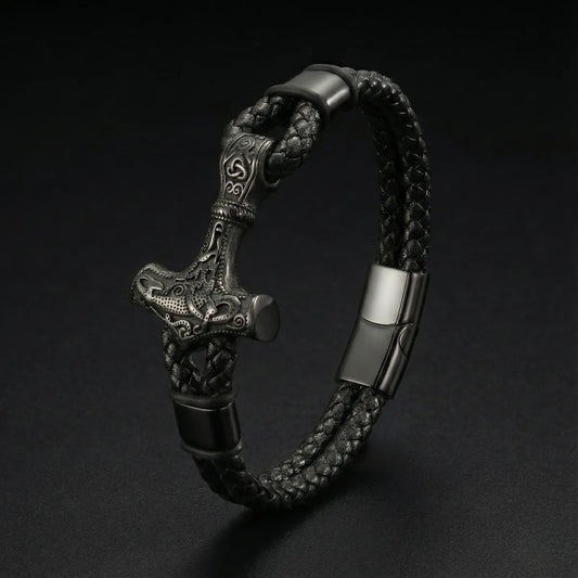 Skórzana bransoletka Thor's Hammer (Mjolnir)