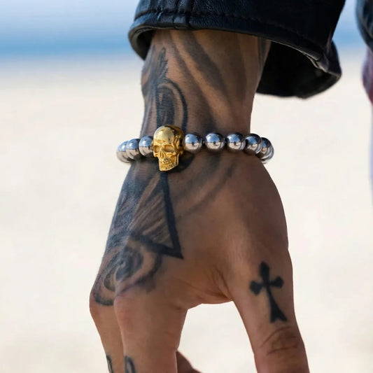 Odkryj naszą kolekcję Bransolet z Czaszką, idealną dla mężczyzn, którzy lubią odważną i wyrazistą modę. Wykonane z trwałej stali nierdzewnej, te bransolety mają kształty koralikowe, ogniwowe i łańcuchowe. Wybieraj spośród czarnych bransolet z czaszką, bransolet ze szkieletem i wzorów z koralikami z czaszką, aby dodać swojemu stylowi wyjątkowego charakteru. Kup teraz, aby cieszyć się niezrównanym stylem i trwałością.