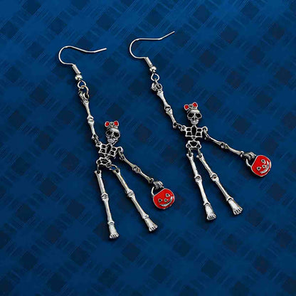 Kolczyki-szkielety wysadzane dżetami na Halloween.