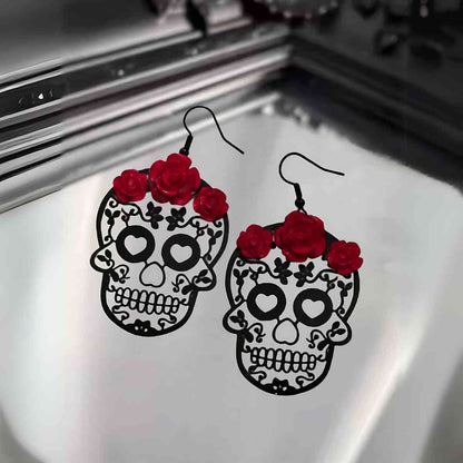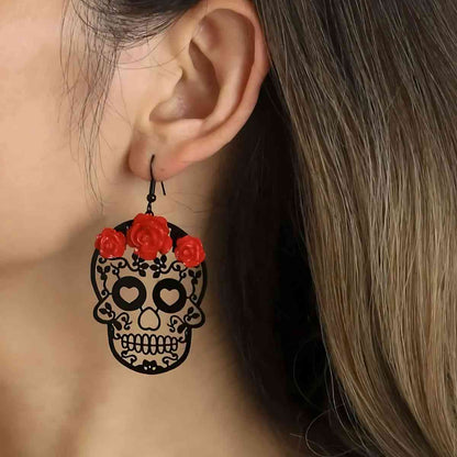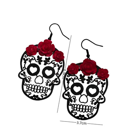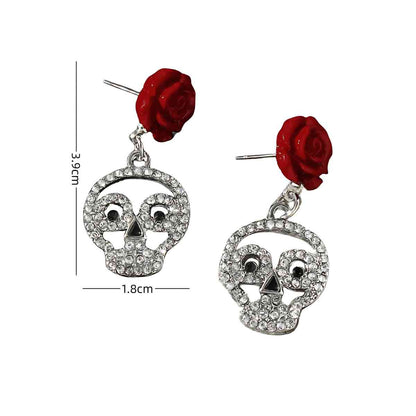 Damskie Wiszące Kolczyki Czaszka z Różami