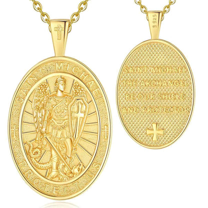 Wearing a St. Michael necklace symbolizes faith, courage, and protection. It serves as a reminder of St. Michael's role as the archangel who defends against evil and provides spiritual strength to overcome challenges.