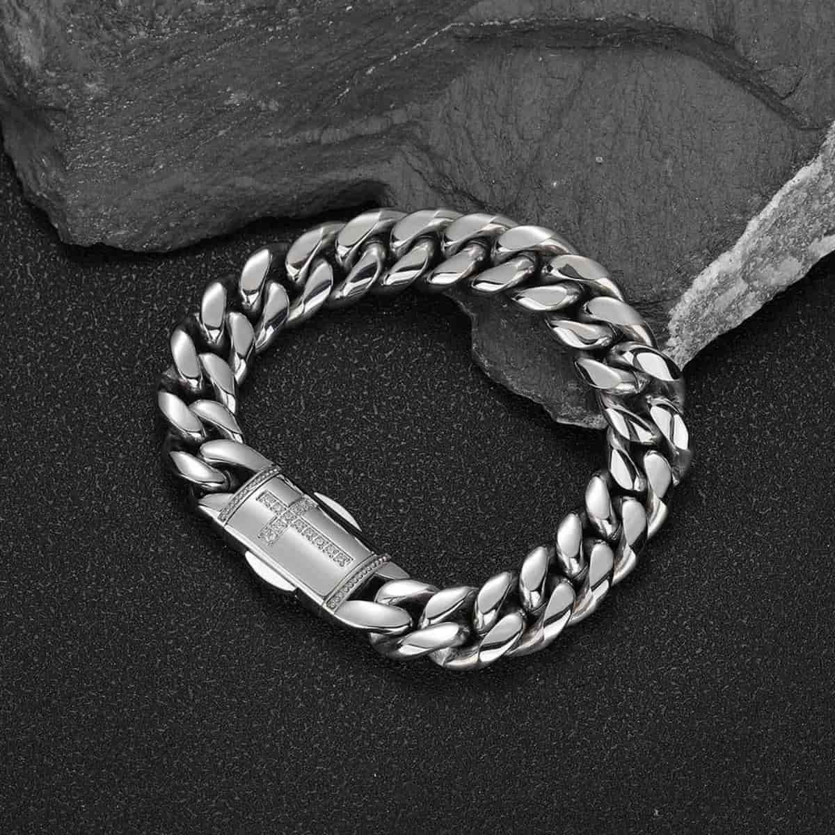 Cuban Link Bracelet with Iced Cross Clasp Silver 12mm