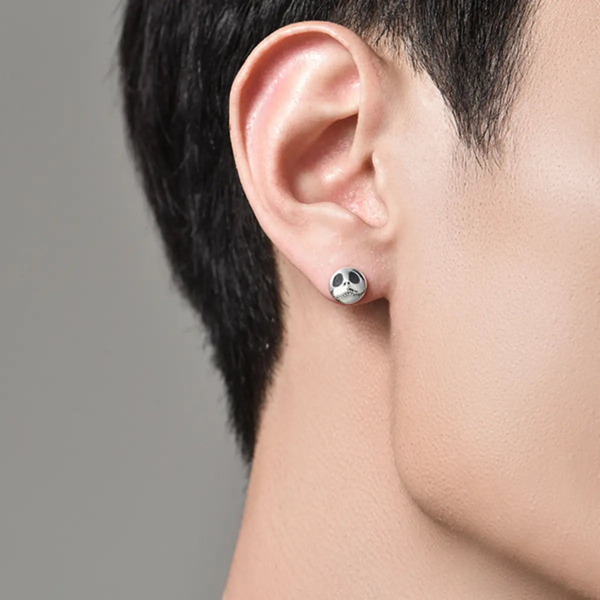 The Nightmare Before Christmas Earrings are unisex studs crafted from hypoallergenic 925 sterling silver, featuring a detailed Jack Skellington face design for fans seeking subtle gothic style.